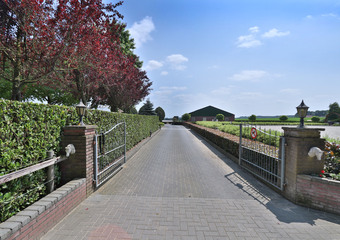 Vanaf de openbare weg zijn een 2-tal opritten aanwezig. Via de eerste oprit is de woning met garage en achterzijde van de rijhal met stallen te bereiken. Via de tweede centrale oprit is de paardenhouderij te bereiken.