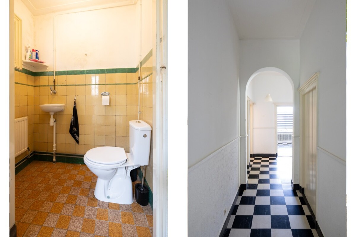 entree, hal, woonkamer met ensuitedeuren, keuken, slaapkamer met badkamer, kamer, toilet, cv-ruimte trapopgang/trappenhuis, kelder