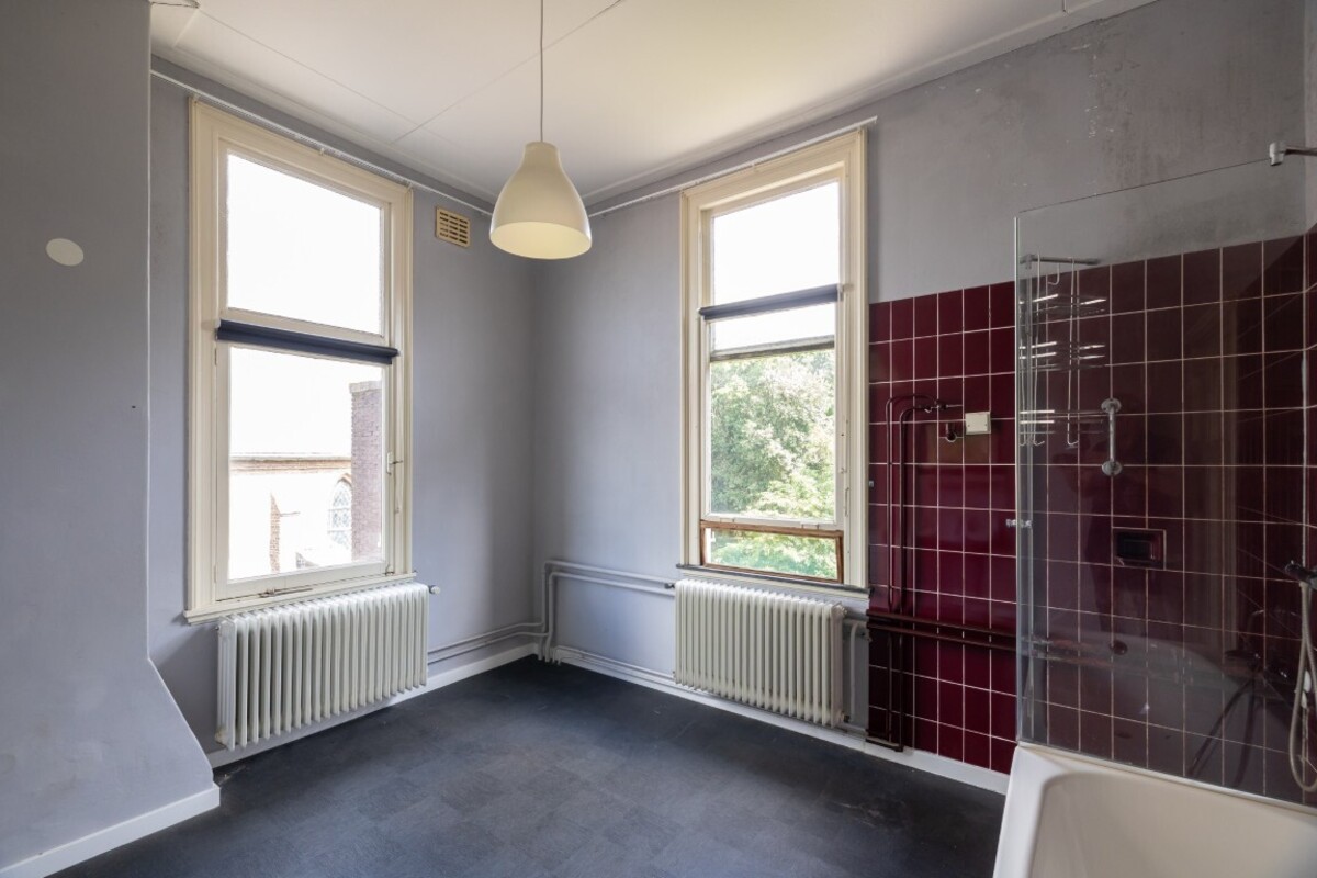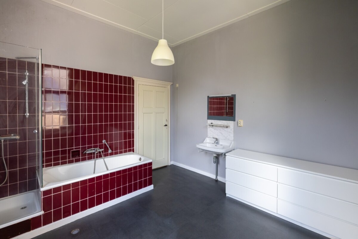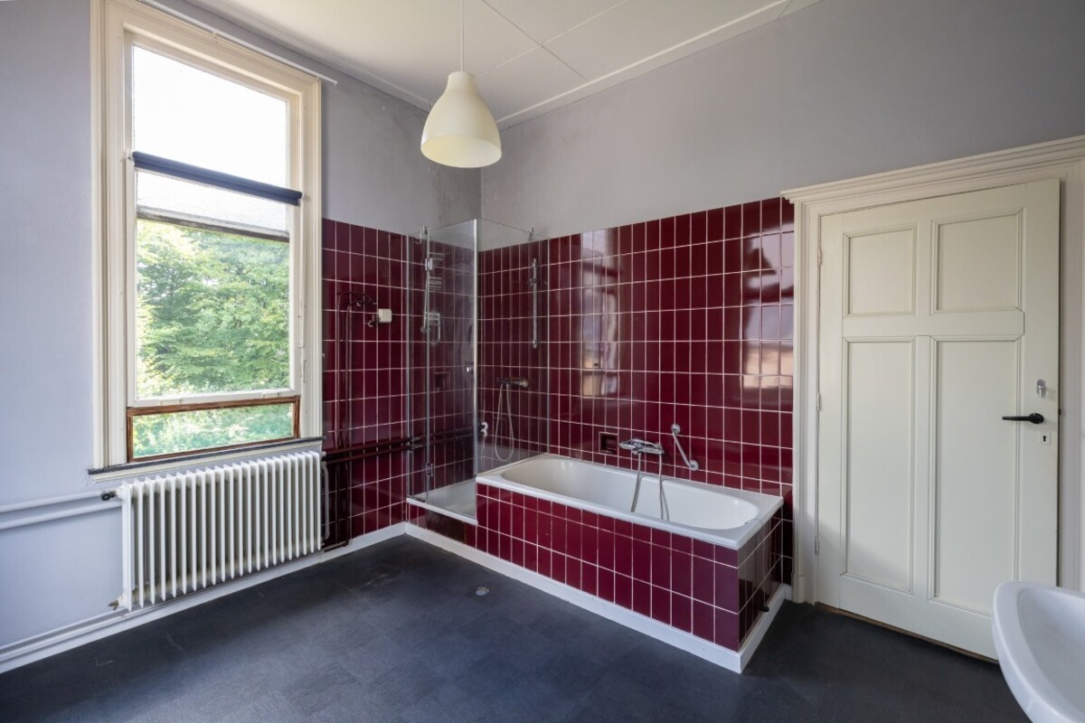 Overloop met 3 slaapkamers, badkamer met ligbad, douche, vaste wastafel en toilet, trapopgang.