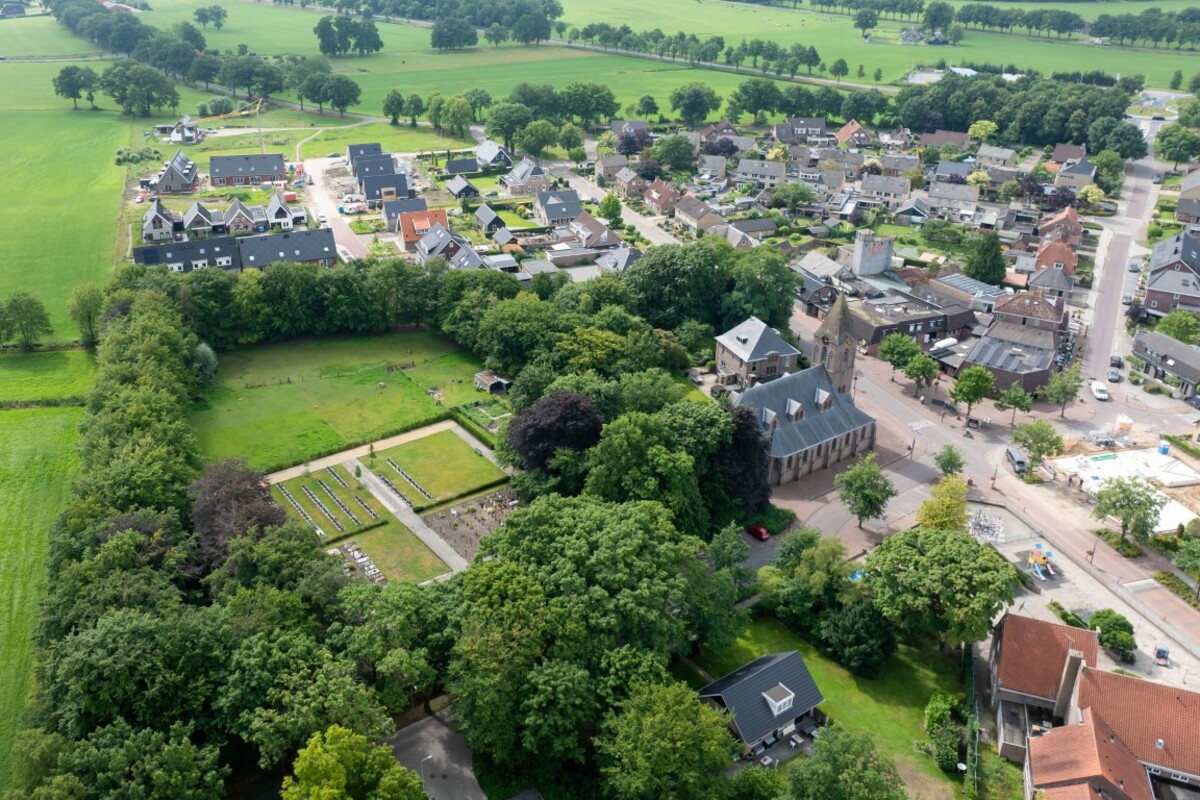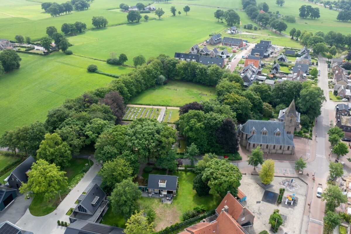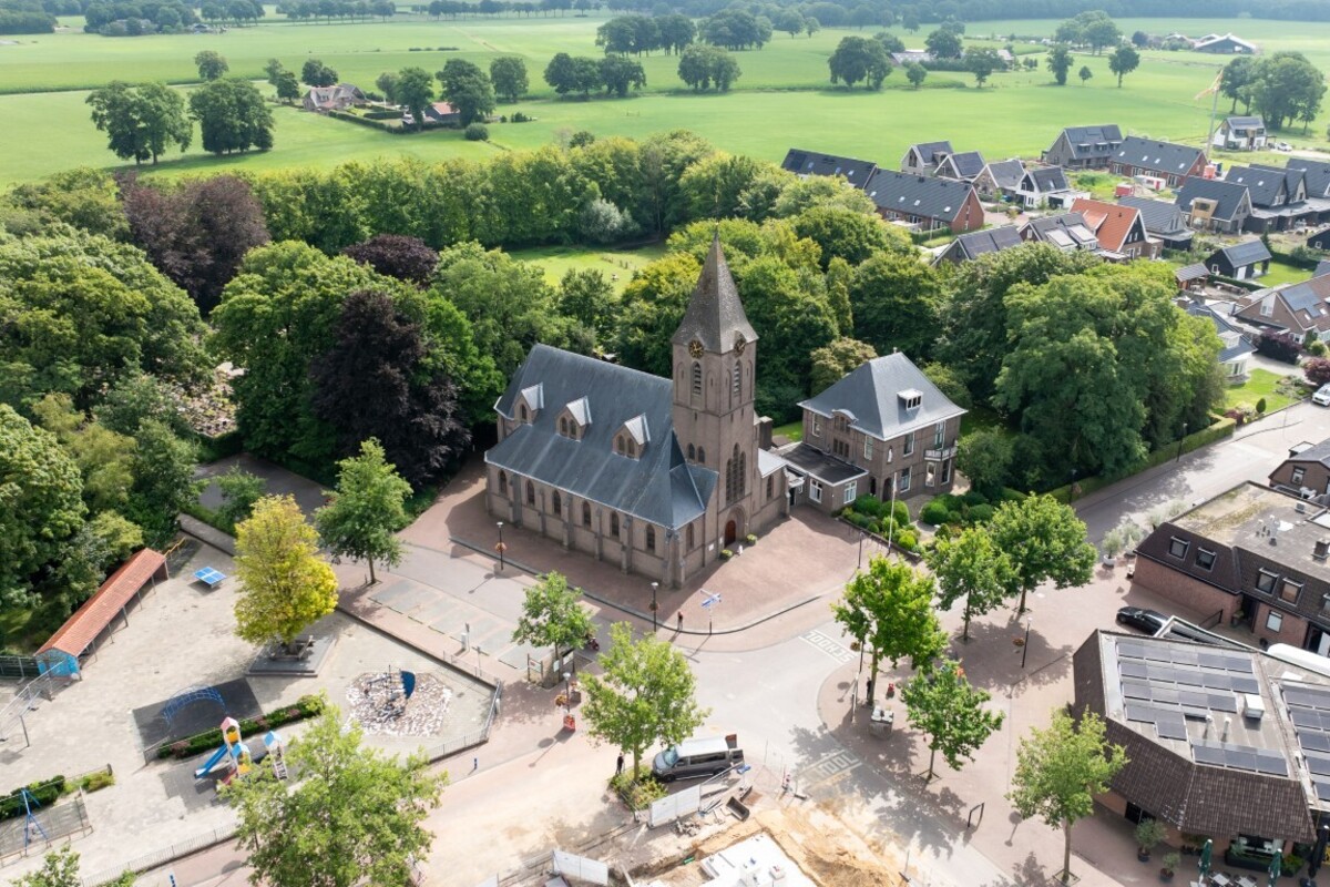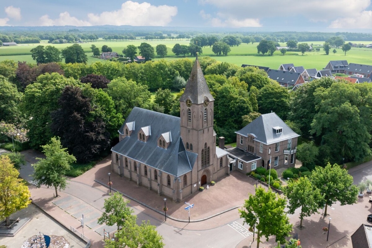 Op een mooie locatie aan de rand van het dorp Nieuw Heeten gelegen kerkgebouw. pastorie met tuin / bostuin en kerkweide met moestuin op een ruim perceel van ca. 7.580 m² eigen grond.