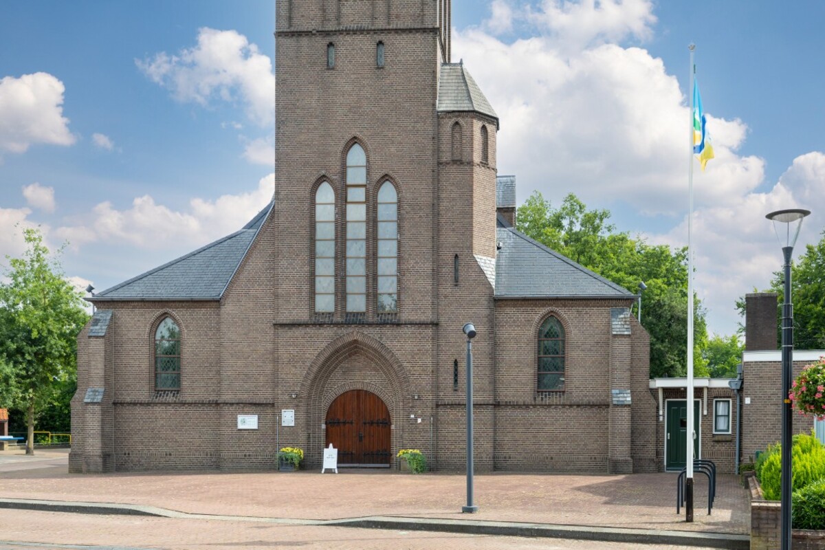 MARKANT KERKGEBOUW MET OMLIGGEND TERREIN