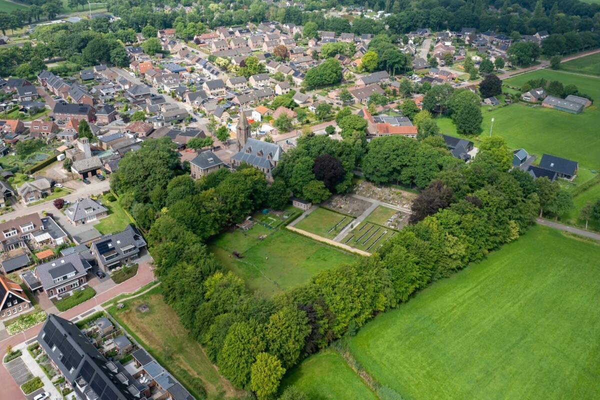 - het geheel: kerkgebouw met de pastorie met tuin / bostuin en kerkweide op ca. 7.580 m².