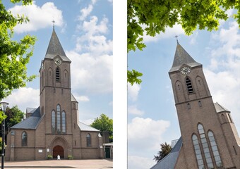 Architect: Wolter ter Riele, Utrecht 1887-1937). Bouwpastoor: Mgr. Jurgen Scholtens (Pastoor te Nieuw Heeten van 1923-1937). Torenspits hoogte totaal circa 45 meter. Kerkgebouw beschikt over circa 385 (zit)plaatsen. Kerkgebouw, pastorie en begraafplaats met processie pad zijn gemeentelijk monument. De kerk is uitgevoerd als driebeukige hallenkerk onder doorlopend leien zadeldak met eindschilden. Aan de westzijde is binnen de bouwmassa een toren opgenomen. Deze toren is opgebouwd in drie geledingen en gedekt met tentdak. Aan de rechterzijde is een traptorentje aangebouwd. De toegang is teruggeplaatst in een gemetseld boogportiek, daarboven drie gotiserende vensters, in de bovenste geleding galmgaten en blindnissen. De gevels van de kerk worden gedeeld door steunberen waartussen gotiserende ramen met glas-in-lood vulling. Het middenschip is aan beide zijden met dakkapellen doorgetrokken waardoor in de muraalbogen van het gewelf licht in de kerk toetreedt. Het koor wordt gesloten met een vijfhoekig koor, de beide zijbeuken met een driehoekig koor. De pastorie is gelijktijdig aangebouwd en bestaat uit twee bouwlagen hoog en gedekt met een leien schilddak. In de kerk bevindt zich een orgel, oorspronkelijk van de orgelbouwer Linsen uit 1836, herbouwd in de kerk van Naarden en in 1923 door Van Eck en Maars gebouwd in deze kerk. Het orgel is in de jaren negentig geheel gerestaureerd.