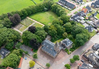 - het geheel: kerkgebouw met de pastorie met tuin / bostuin en kerkweide op ca. 7.580 m².