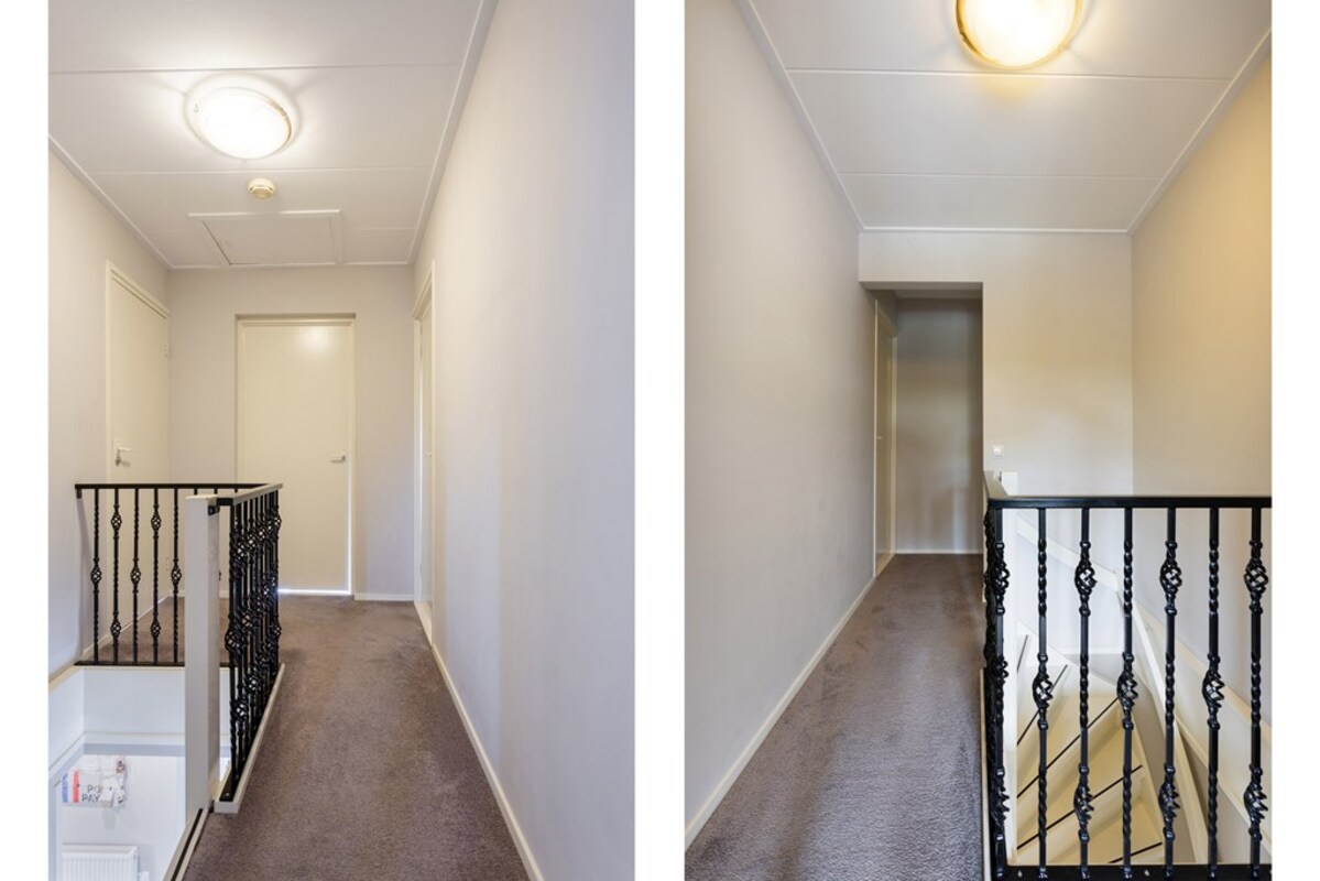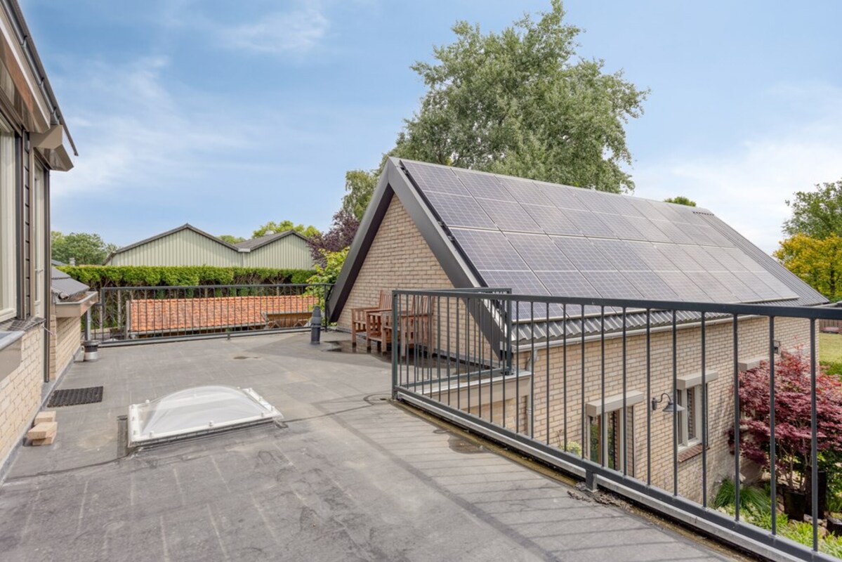 Op de verdieping bevinden zich de overloop, toiletruimte en vier slaapkamers, alle voorzien van rolhorren. Via één van de (slaap)kamers loopt u zo naar het dakterras.