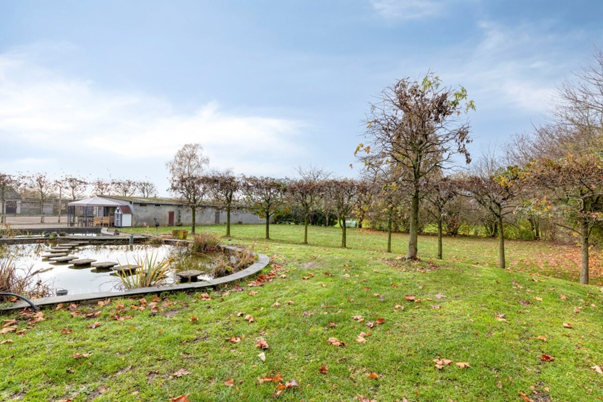Het buitenterrein rondom de woonboerderij is voorzien van een functionele, volledig beklinkerde erfverharding. De tuin is aangelegd met gazon, bomen, hagen en een vijverpartij.