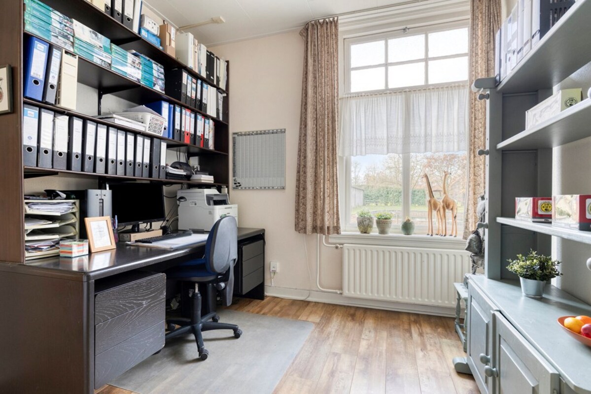 Via de voordeur betreedt u de hal van het karakteristieke pand (bouwjaar 1923), met meterkast. De hal biedt toegang tot de beide woonkamers, het kantoor en de ruime voorraadkelder. Vanuit de woonkamer met schouw, balkenplafond en fraaie parketvloer, kunt u optimaal genieten van de tuin en het uitzicht door de raampartijen. Het kantoor is tevens geschikt voor andere doeleinden, zoals hobby- of speelkamer. Vanuit het kantoor komt u in de ruime woonkeuken. Ook hier kunt u genieten van veel lichtinval en zicht op de tuin. In de achterbouw is de volledig vernieuwde badkamer, het vernieuwde toilet en een ruimte met de witgoedaansluitingen en de c.v.-ketel.