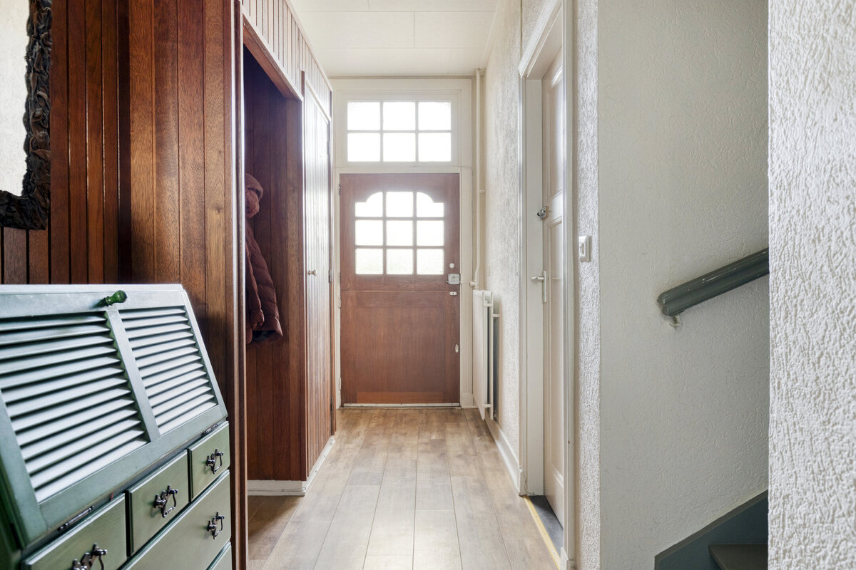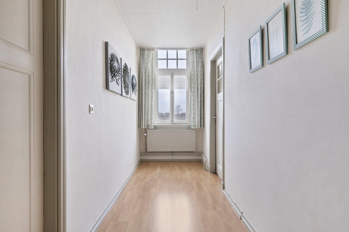 Via de voordeur betreedt u de hal van het karakteristieke pand (bouwjaar 1923), met meterkast. De hal biedt toegang tot de beide woonkamers, het kantoor en de ruime voorraadkelder. Vanuit de woonkamer met schouw, balkenplafond en fraaie parketvloer, kunt u optimaal genieten van de tuin en het uitzicht door de raampartijen. Het kantoor is tevens geschikt voor andere doeleinden, zoals hobby- of speelkamer. Vanuit het kantoor komt u in de ruime woonkeuken. Ook hier kunt u genieten van veel lichtinval en zicht op de tuin. In de achterbouw is de volledig vernieuwde badkamer, het vernieuwde toilet en een ruimte met de witgoedaansluitingen en de c.v.-ketel.