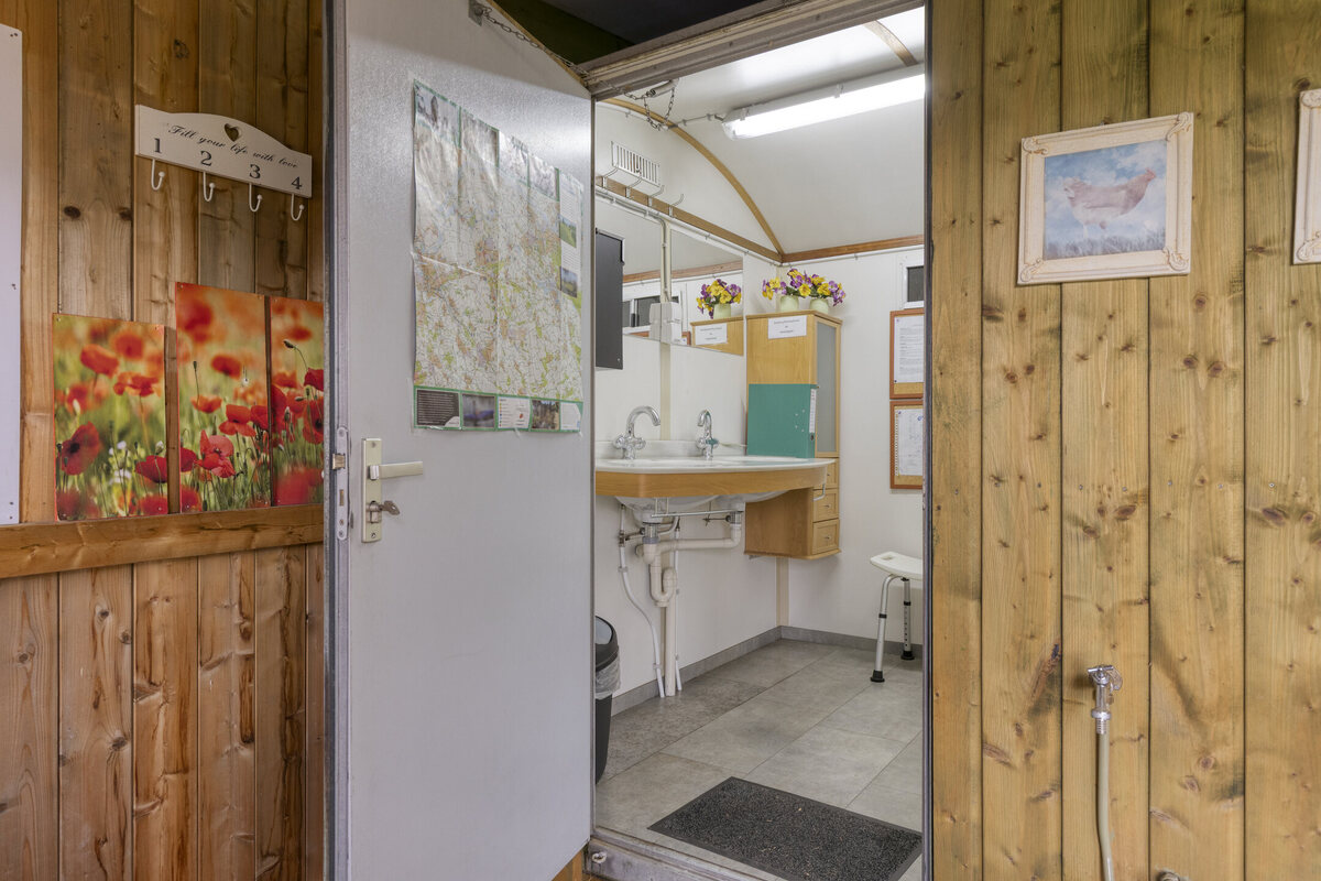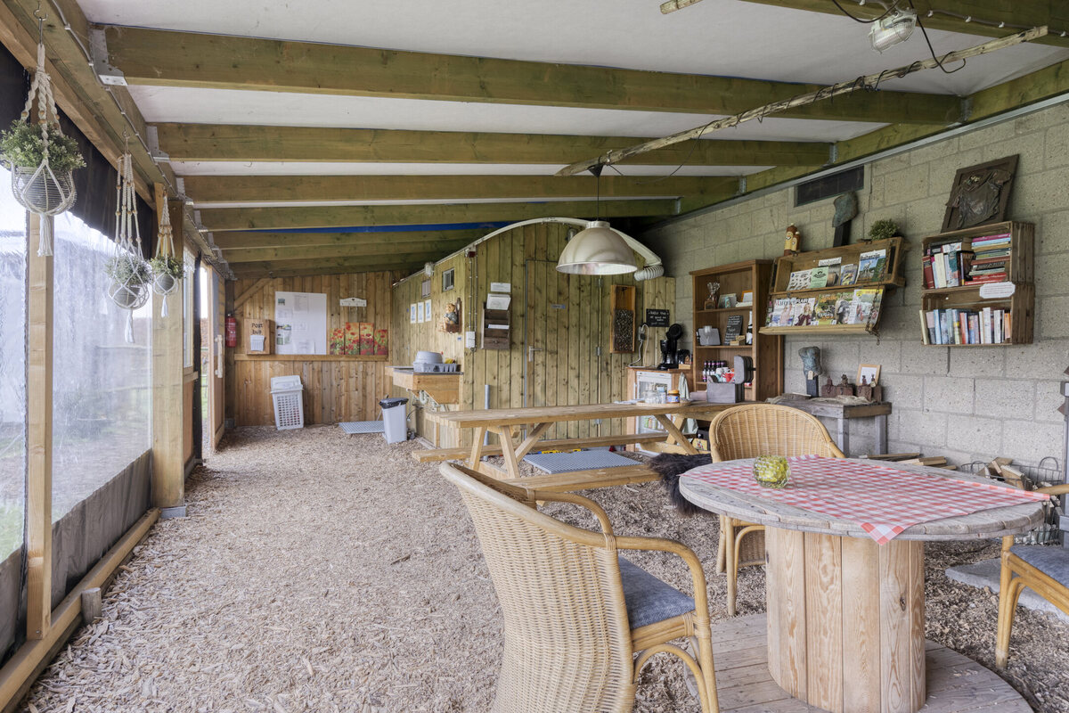 Aan de achterzijde ligt de, met groen omzoomde, kleinschalige camperplaats, ingericht met een toiletgebouw, een gezellig, overdekt en volledig af te sluiten terras met doucheruimte en een vijver.