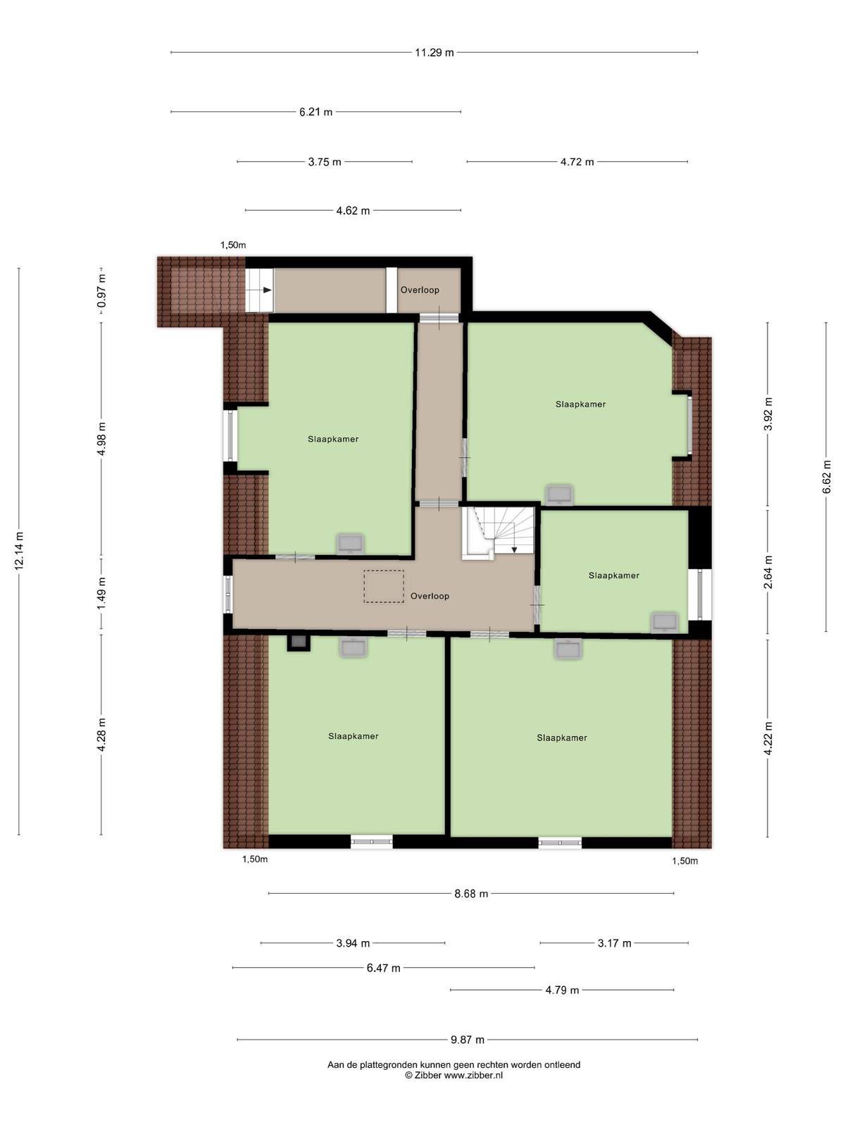 De eerste verdieping is zowel via de hal als via het appartement toegankelijk. De ruime overloop biedt toegang tot 5 slaapkamers. Ga je de trap op, dan kom je op de grote overloop met 5 (slaap)kamers, allen voorzien van een eigen wastafel. De gehele eerste verdieping is voorzien van een laminaatvloer.