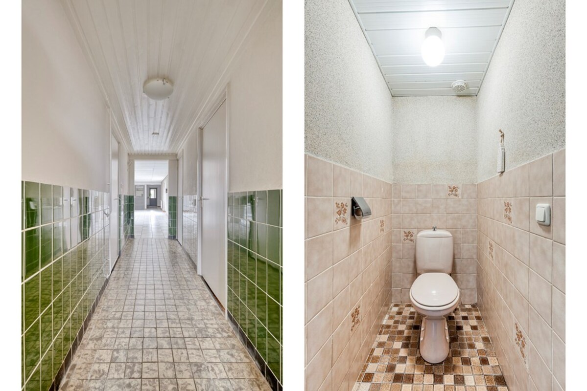 Aangrenzend vindt u twee royale kantoorruimtes, voorzien van een fraaie gietvloer, een berging en een grote volledig geïsoleerde schuur/garage met vide. Deze ruimte is voorzien van een gevlinderde betonvloer en een vaste trap naar de grote zolder – ideaal voor opslag of archief. De schuur is middels 2 elektrische segmentdeuren en een loopdeur toegankelijk.