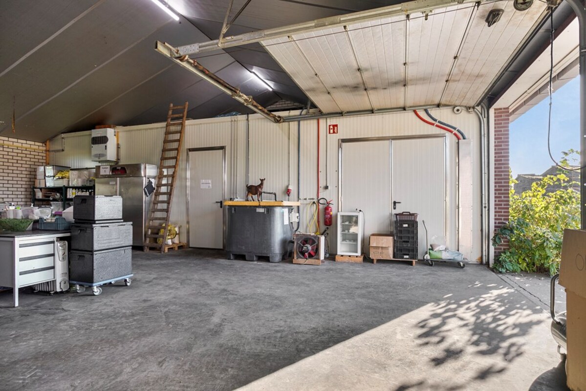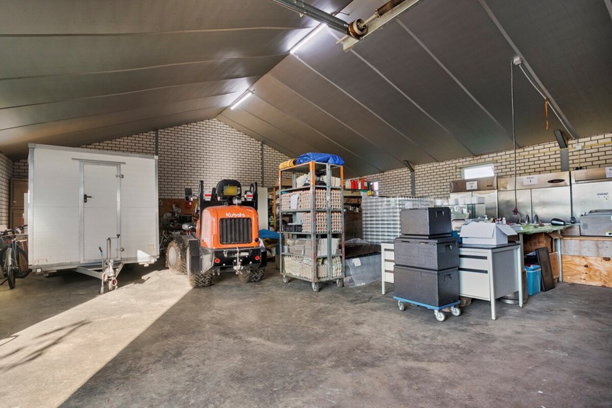 Loods: 22 x 11,5 meter bouwjaar 1997 (253 m²) in spouw uitgevoerd. Voorzien van een gevlinderde vloer, stalen spanten, geïsoleerde binnenwanden, geïsoleerd dak van sandwichpanelen voorzien van 78 zonnepanelen op het dak (2021) incl. 2 overheaddeuren.  Ingang winkelruimte inclusief toilet, keukenblok en een grondwaterbron. Hygiënesluis, kaasmakerij en een kaasopslagruimte incl. koeling. Er bevind zich een zolder op de kaasmakerij en kaasopslag voorzien van houten vloer. Circa 121m² is in gebruik als opslagruimte.