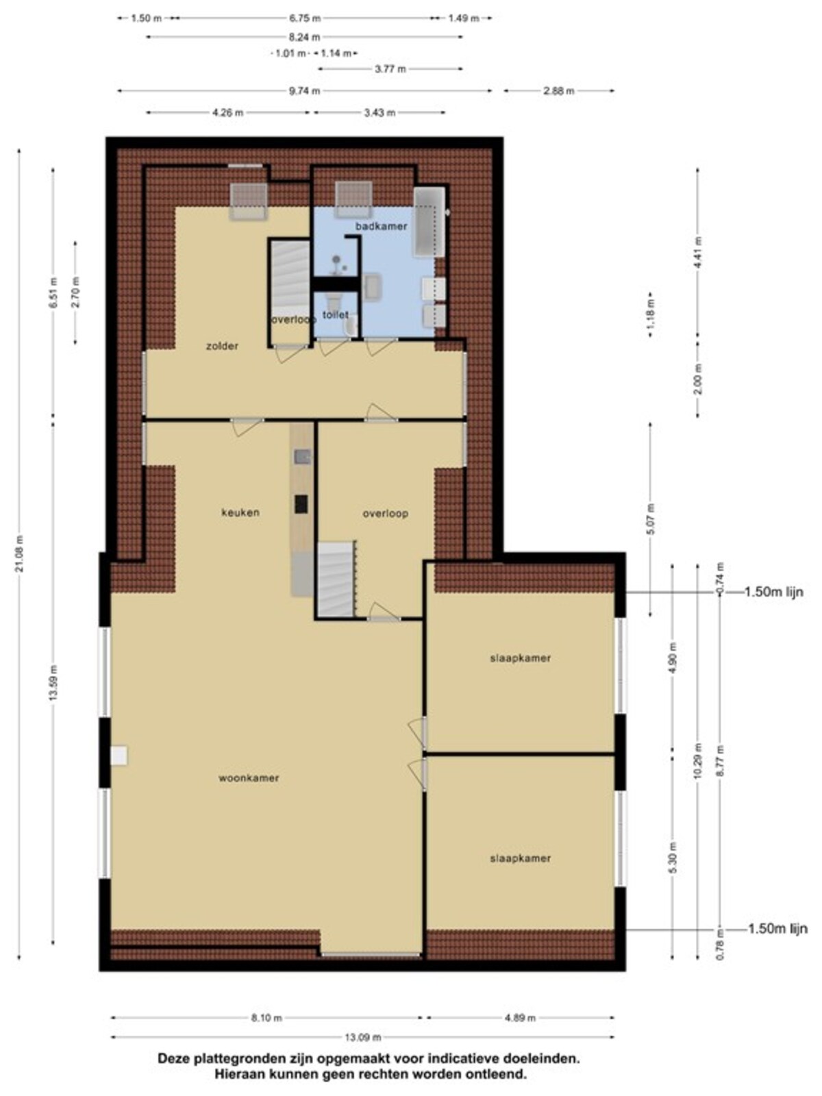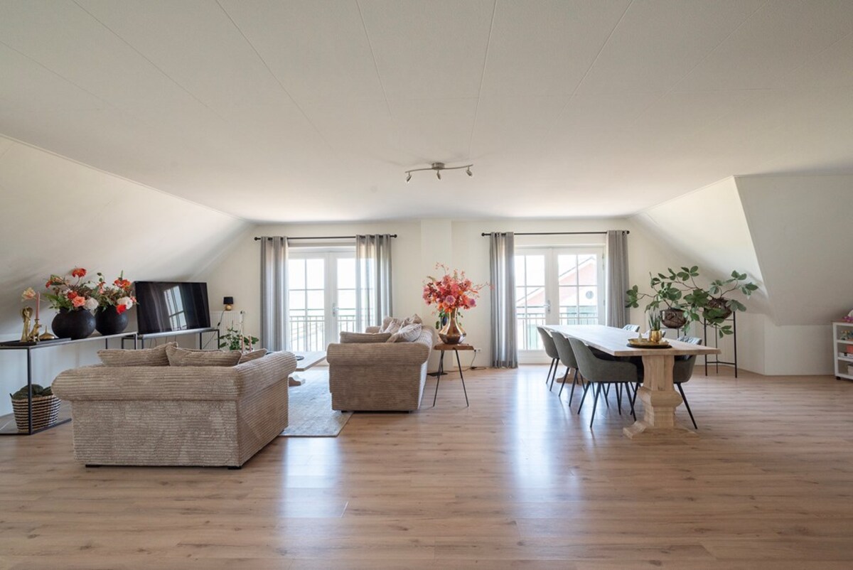 De riante verdieping is als volgt ingericht: overloop, twee riante slaapkamers en grote badkamer met inloopdouche, ligbad en tevens voorzien van vloerverwarming, zitkamer met 2 Franse balkons en open woonkeuken met ingebouwde combi magnetron, koelkast en vaatwasser. De ruime zolder, is bereikbaar door middel van een vlizotrap in één van de twee slaapkamers. De zoldervloer is geïsoleerd. Ideaal als gastenverblijf of voor inwonend personeel.