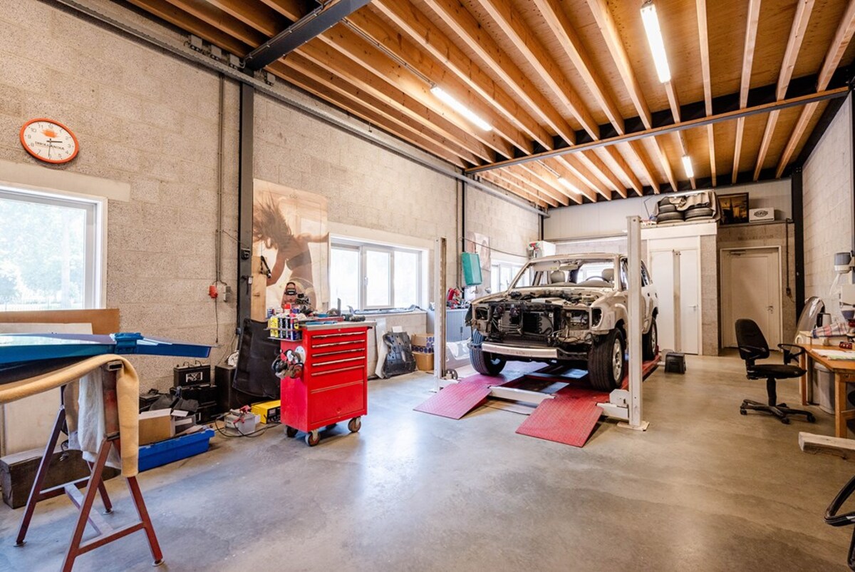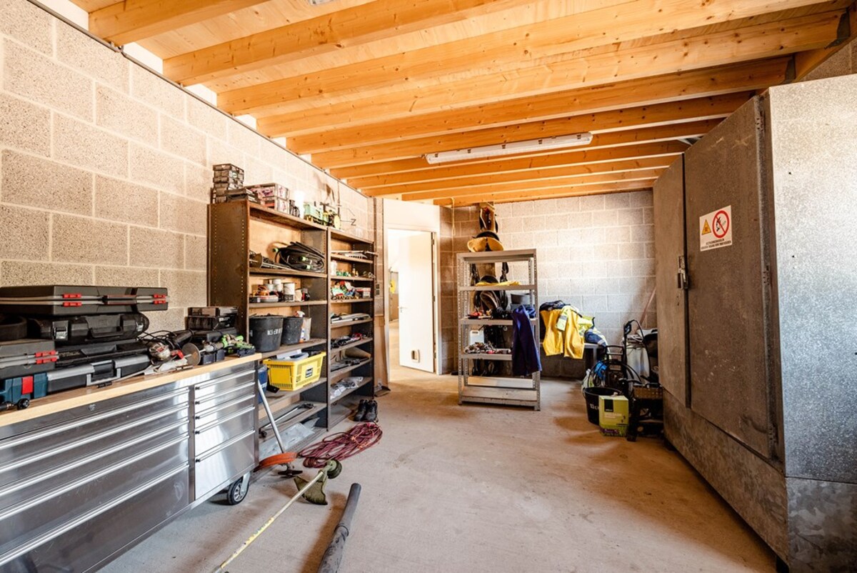 Het voorste gedeelte van de loods is ingericht als werkplaats/garage van 5,82 meter breed met een lengte van 30,34 meter. De totale oppervlakte van de werkplaats is ongeveer 177 m².