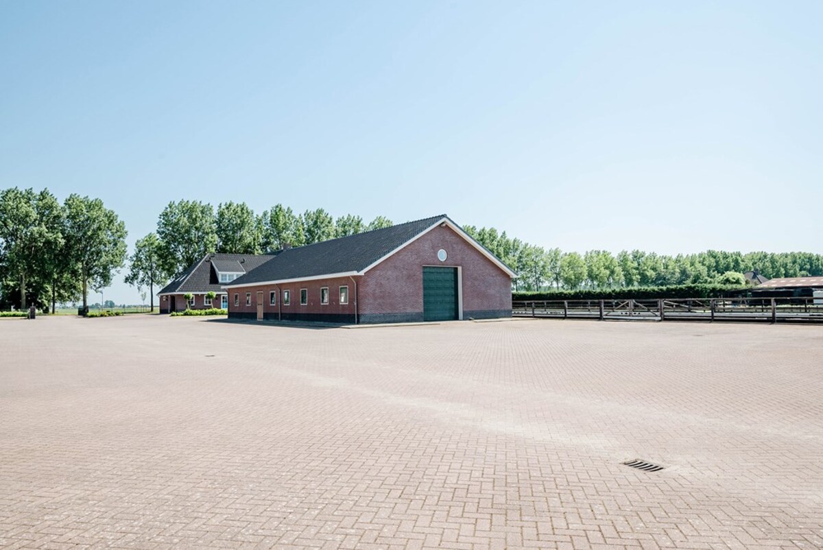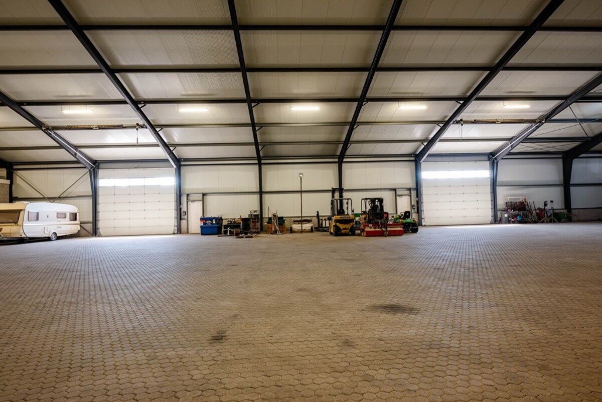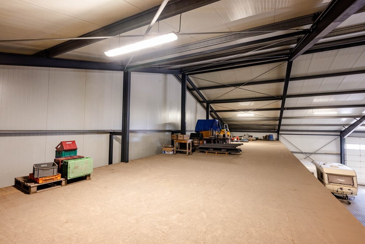 Het grootste gedeelte van de loods is ingericht als akkerbouwloods. Dit gedeelte heeft een lente van 66,95 meter met een breedte van 30,34 meter. De totale oppervlakte is ongeveer 2.031 m². Er bevinden zich 2 elektrische overheaddeuren van 5,74 meter bij 5 meter en 2 loopdeuren. Er ligt geen vaste vloer in dit gedeelte van de loods. Dit is gedaan voor de mogelijke bouw van een rijhal in de loods in de toekomst. Boven de werkplaats bevindt zich een verdieping, die te bereiken is met een vaste trap, die ingericht kan worden als kantine en juryplek voor mogelijke paardrijwedstrijden. De volgende ruimte is ingericht als opslagruimte. Deze is afgesloten met een tijdelijke wand en heeft een lengte van 30,40 meter met een breedte van 30,34 meter. De totale oppervlakte van dit gedeelte is ongeveer 922 m². De opslagruimte is voorzien van een overheaddeur van 5,74 meter bij 5 meter.