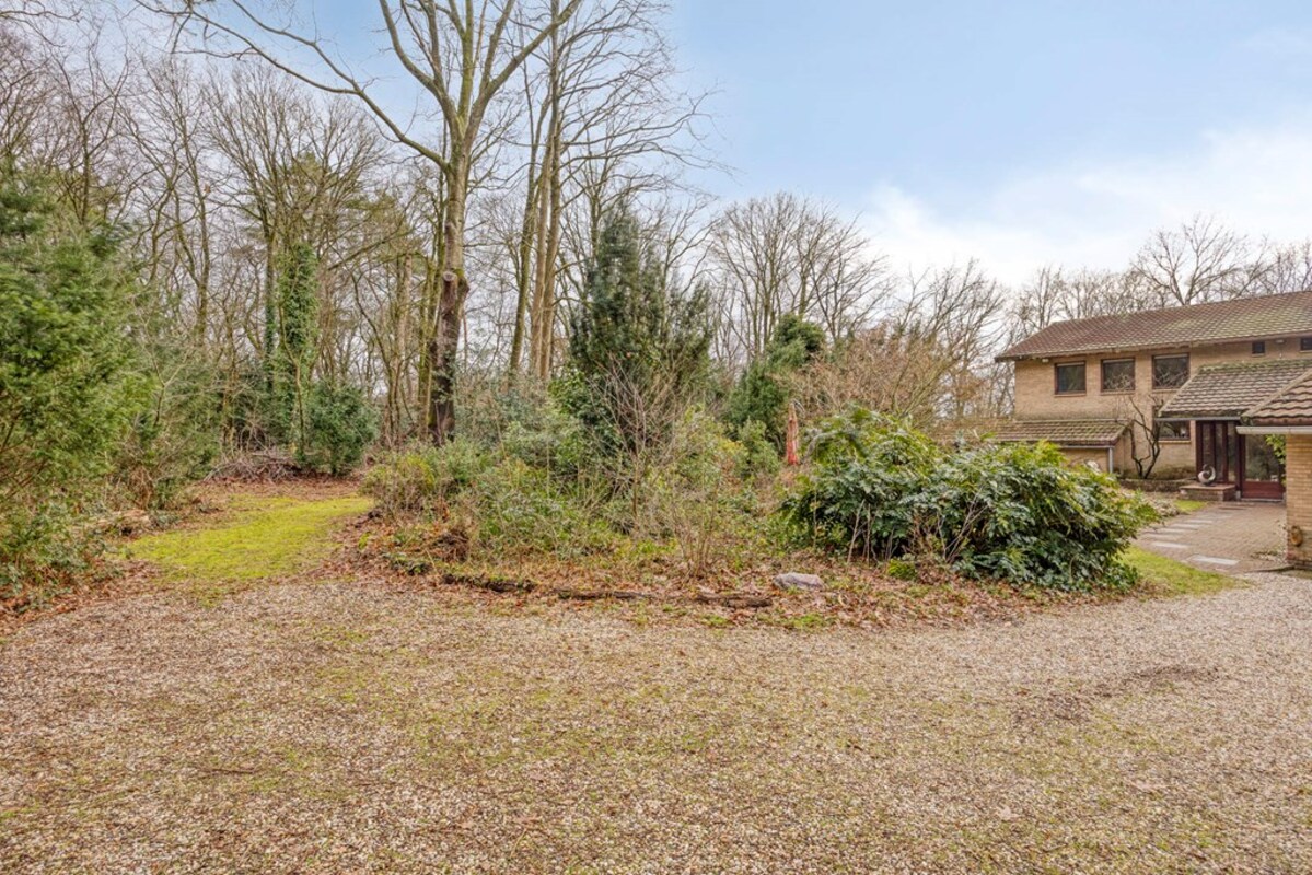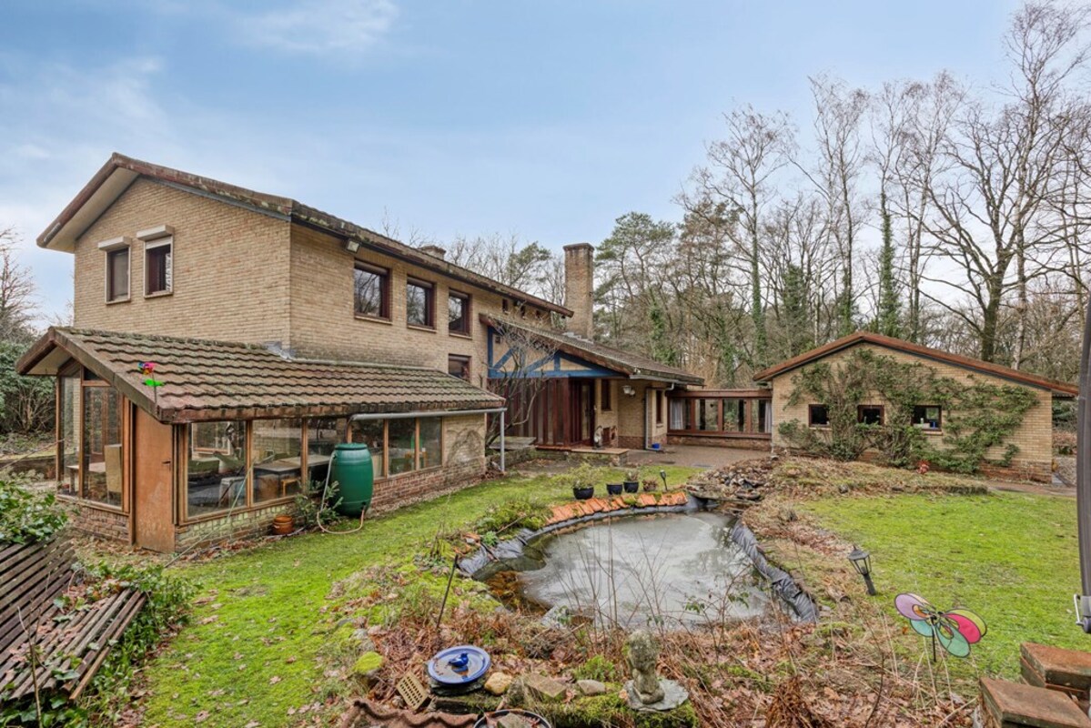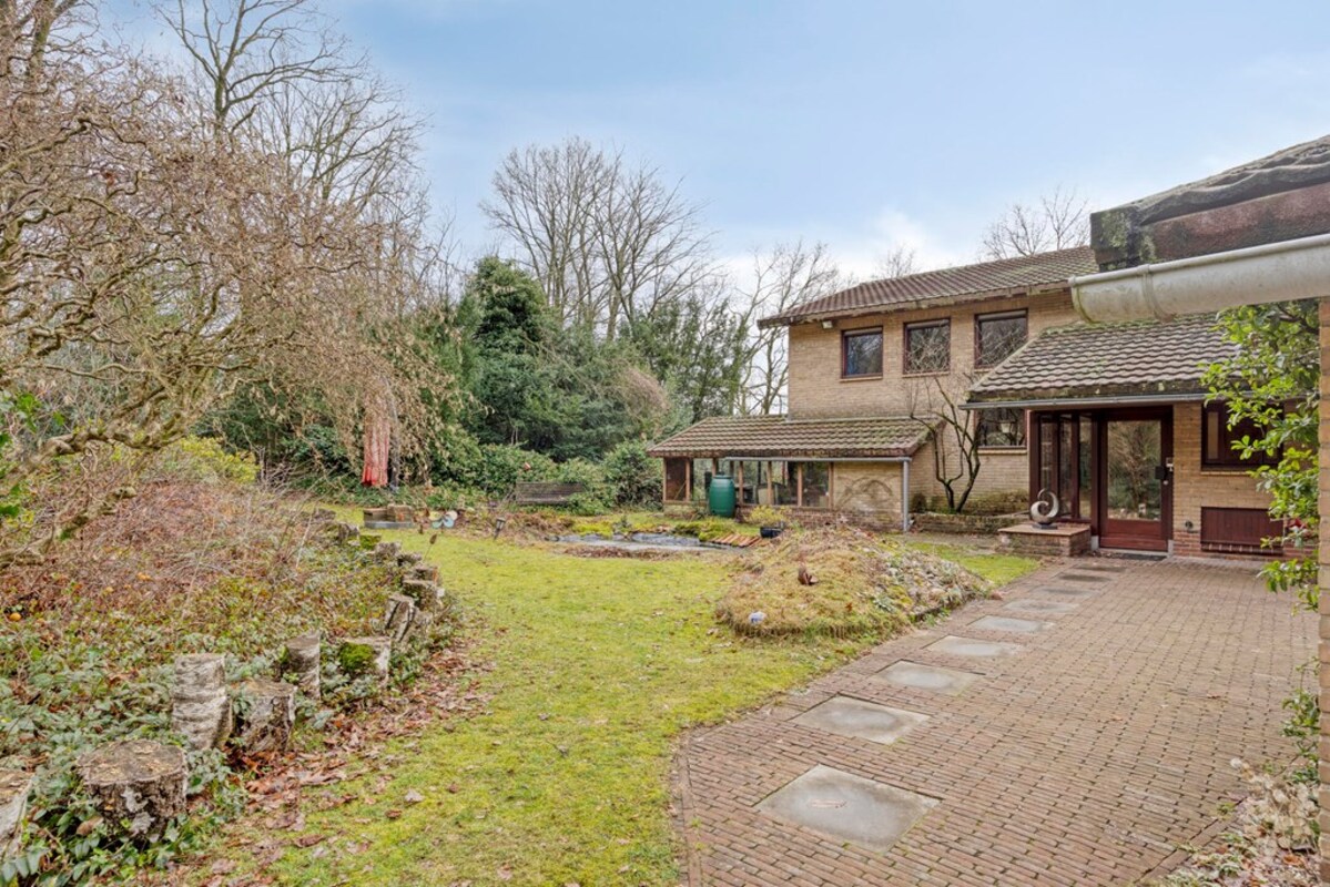 Rondom de woning ontvouwt zich een prachtige, bosrijke tuin die met zorg en oog voor natuur is aangelegd. Hier vormen volwassen beplanting, een fraai gazon en een sfeervolle vijver samen een rustgevende omgeving waar privacy en groen centraal staan. Het geheel ademt een natuurlijke charme en biedt in elk seizoen een eigen karakter.