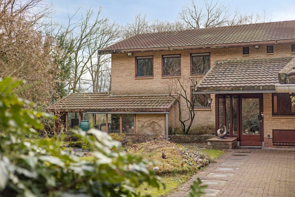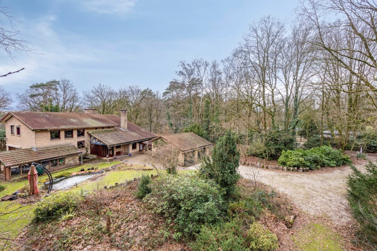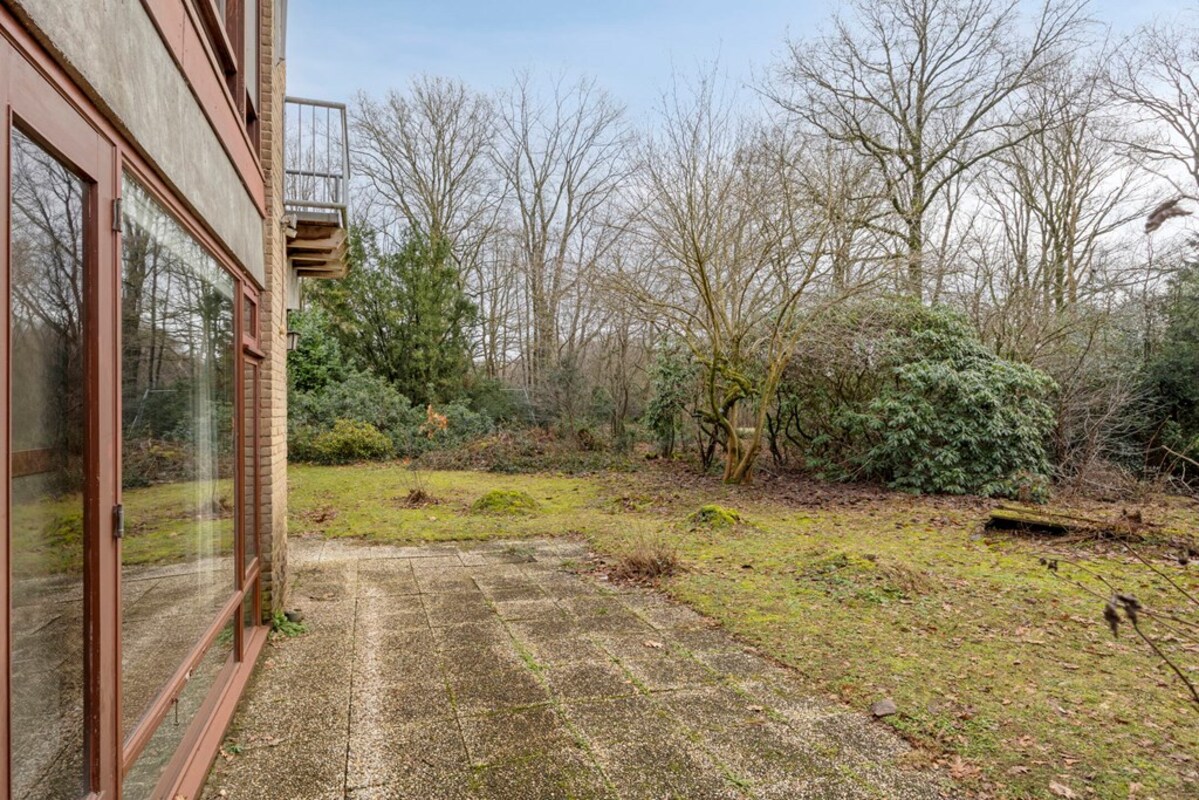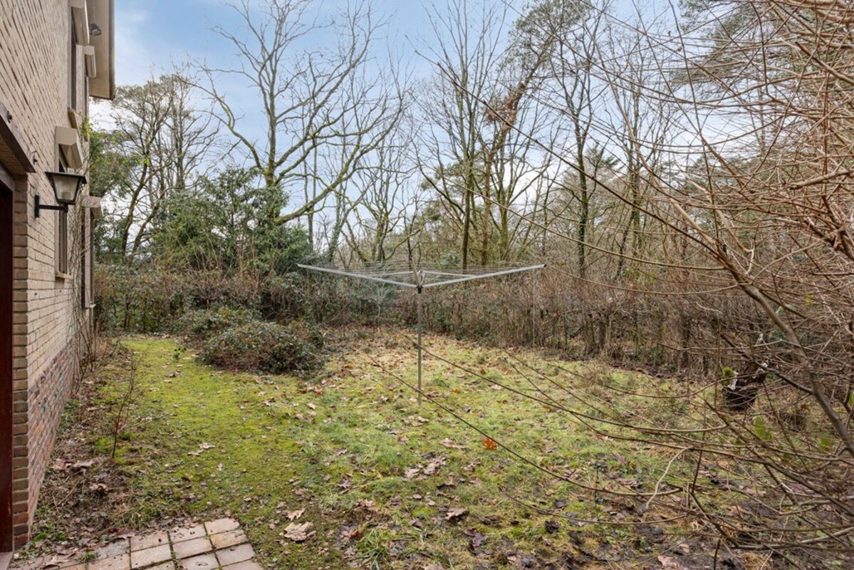 Rondom de woning ontvouwt zich een prachtige, bosrijke tuin die met zorg en oog voor natuur is aangelegd. Hier vormen volwassen beplanting, een fraai gazon en een sfeervolle vijver samen een rustgevende omgeving waar privacy en groen centraal staan. Het geheel ademt een natuurlijke charme en biedt in elk seizoen een eigen karakter.