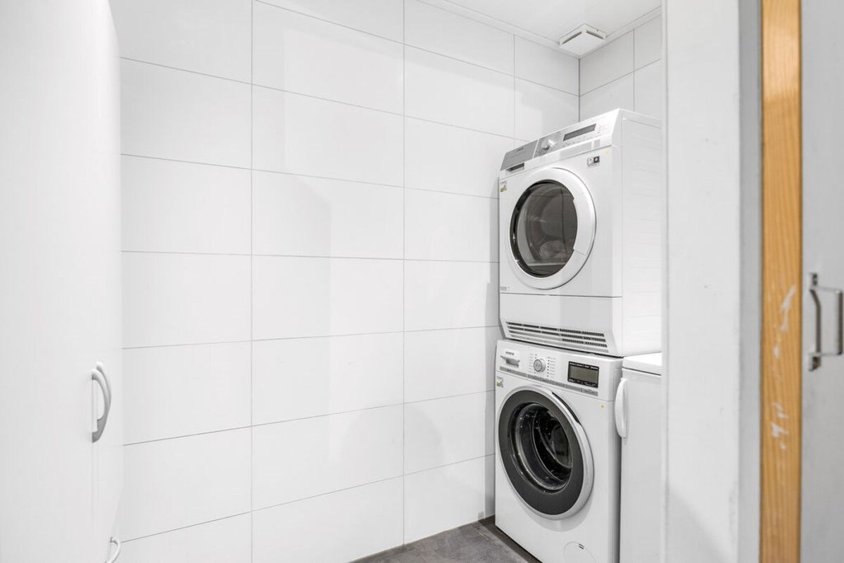 Slaapkamer 1 heeft een walk in closet en aansluitend directe toegang tot de waskamer met aansluiting voor wasmachine en droger.