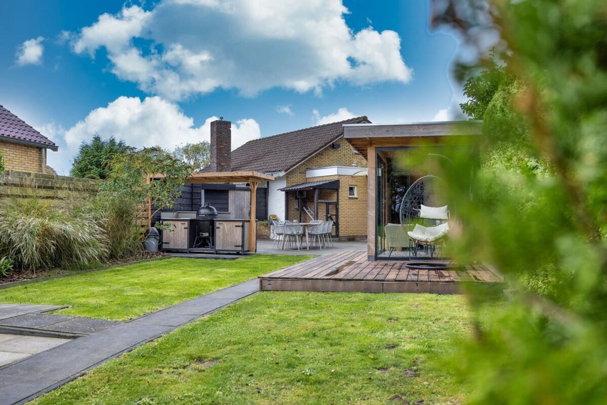 Royale, levensloopbestendige, energiezuinige semi-bungalow, met zonnige tuin, vrij uitzicht aan de achterzijde, luxe tuinkamer, buitenkeuken, ruime klusruimte en mancave.