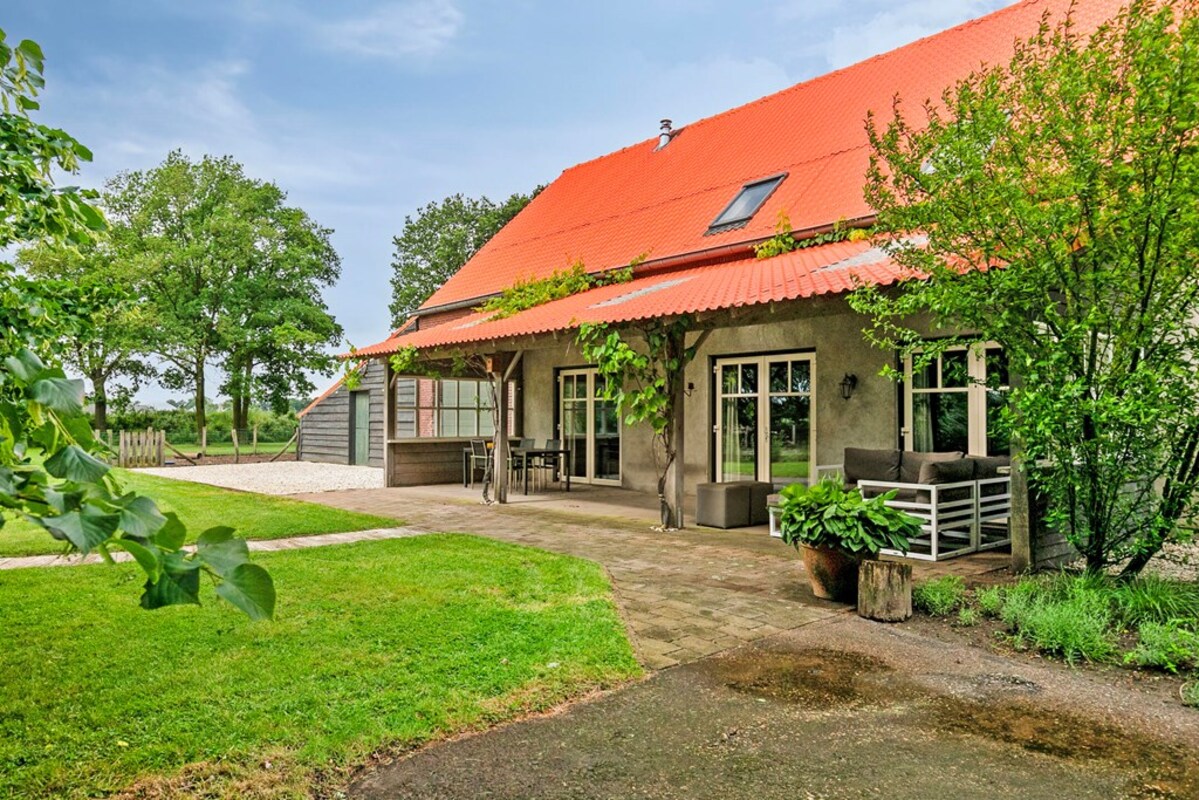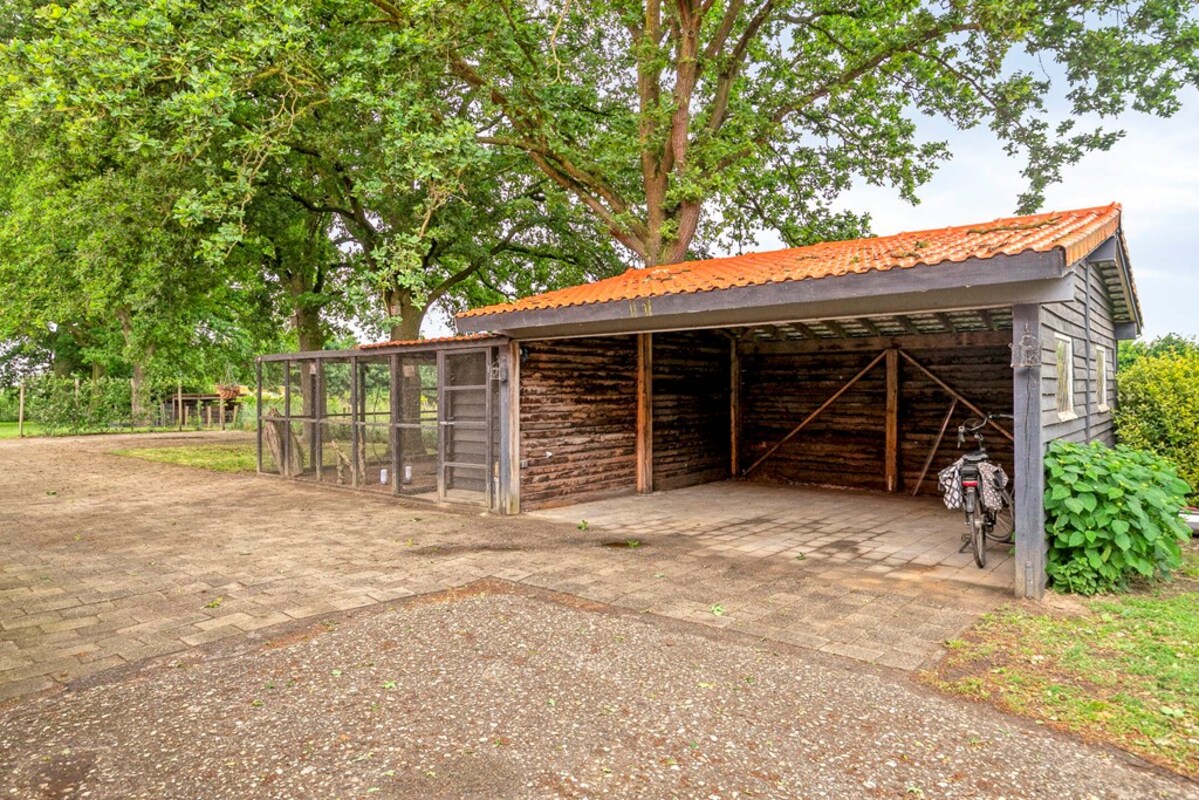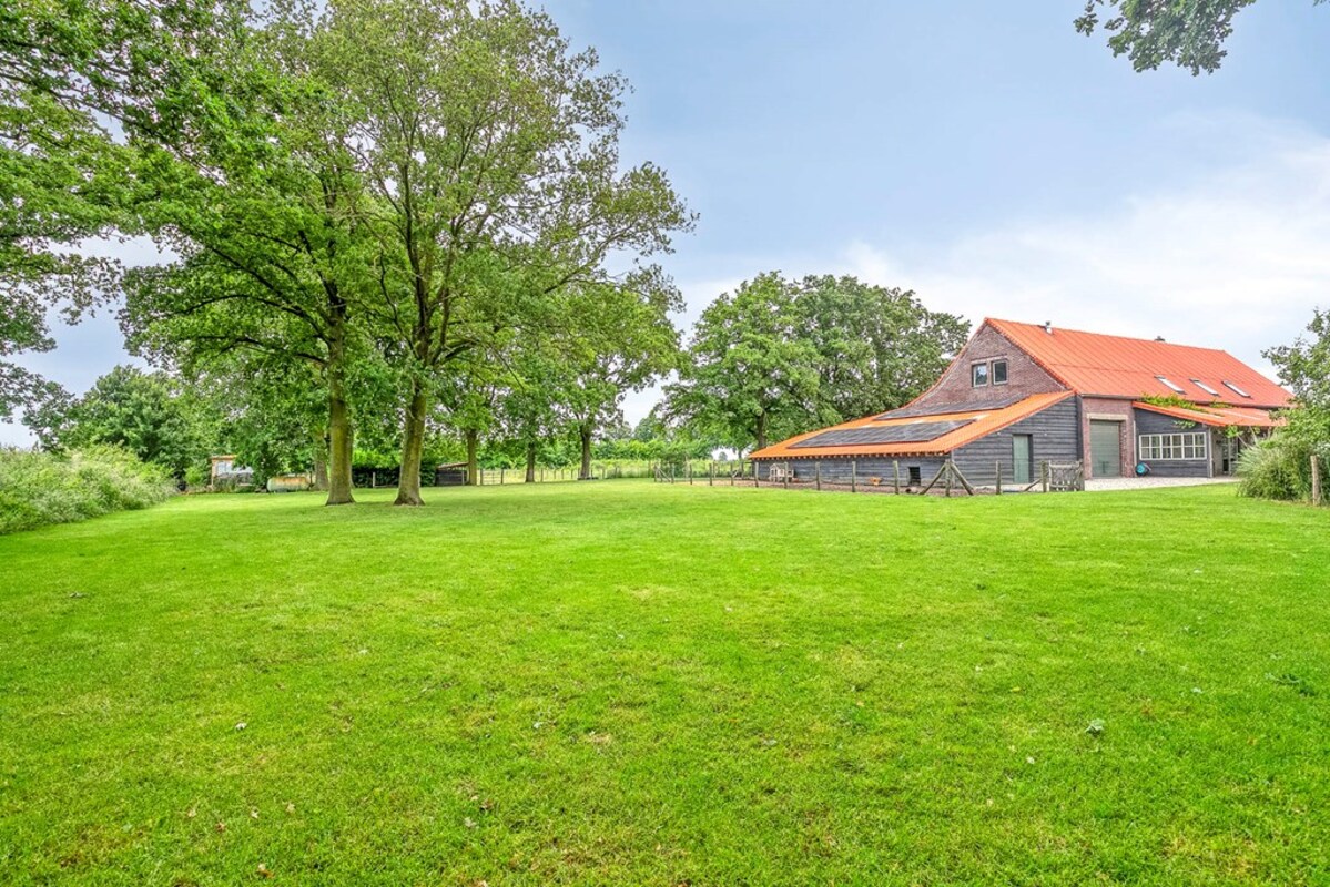 Buiten geniet je van volop leefruimte: een fraai aangelegde tuin en de drie paardenstallen maken dit tot een waar paradijs voor mens én dier. Daarnaast is er een heerlijke, ruime overkapping van waaruit je prachtig uitkijkt over de tuin, perfect om te ontspannen, te barbecueën of gezellige buitenfeestjes te geven.