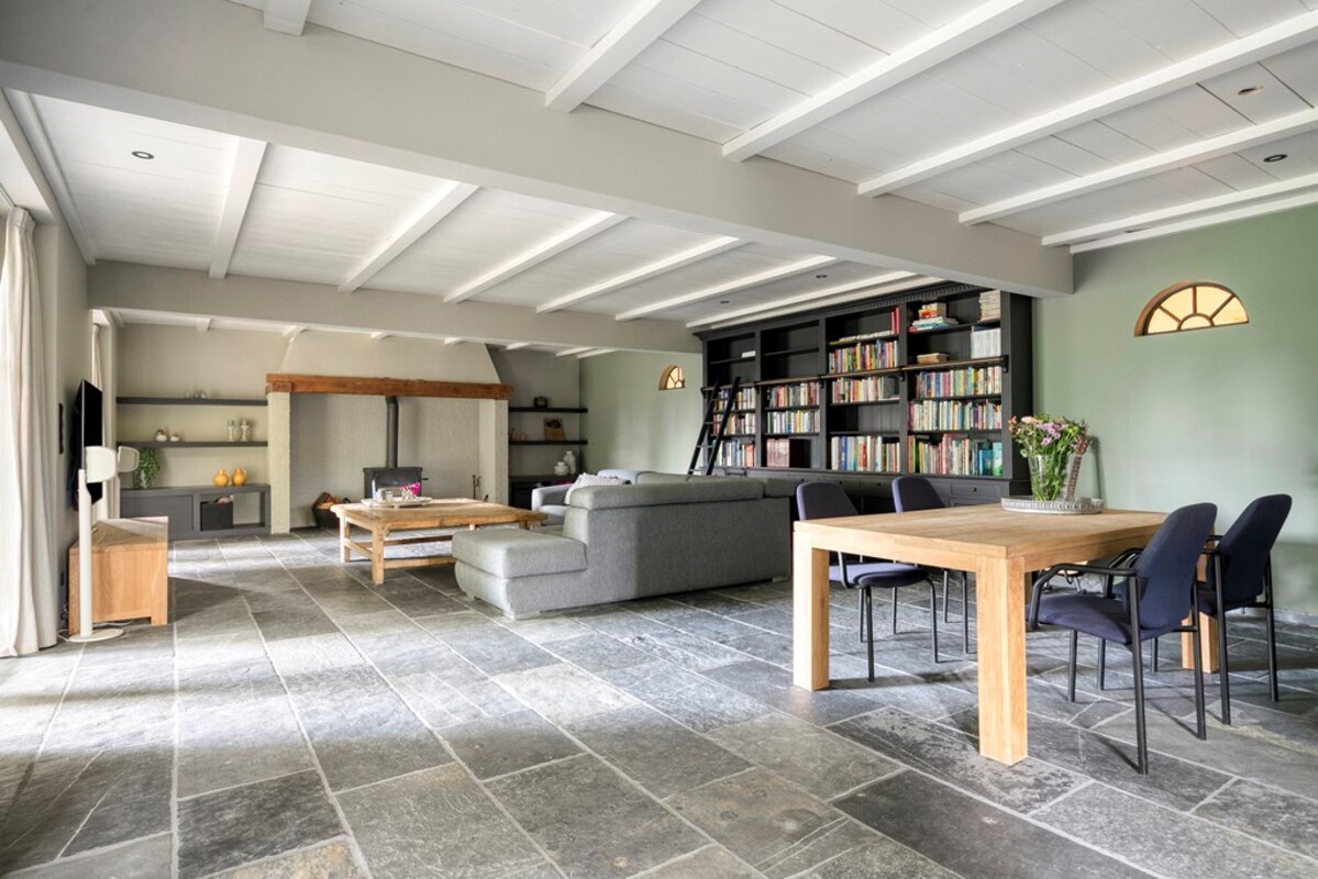 Met een royale gebruiksoppervlakte van maar liefst 435 m² biedt deze woonboerderij uitzonderlijk veel leefruimte en mogelijkheden. Een echte eyecatcher in het interieur is de prachtige authentieke vloer, die bijdraagt aan de warme, landelijke sfeer van de woning.