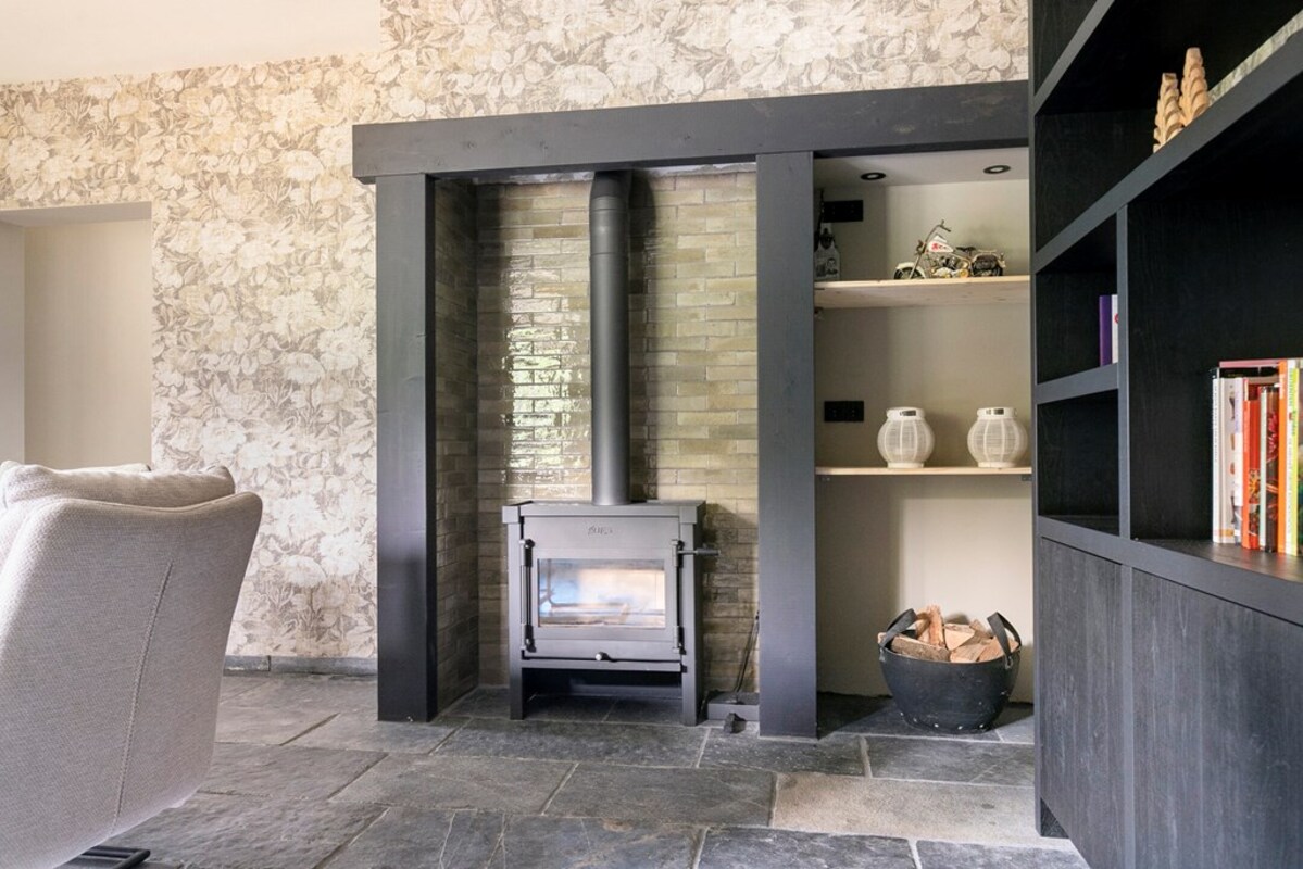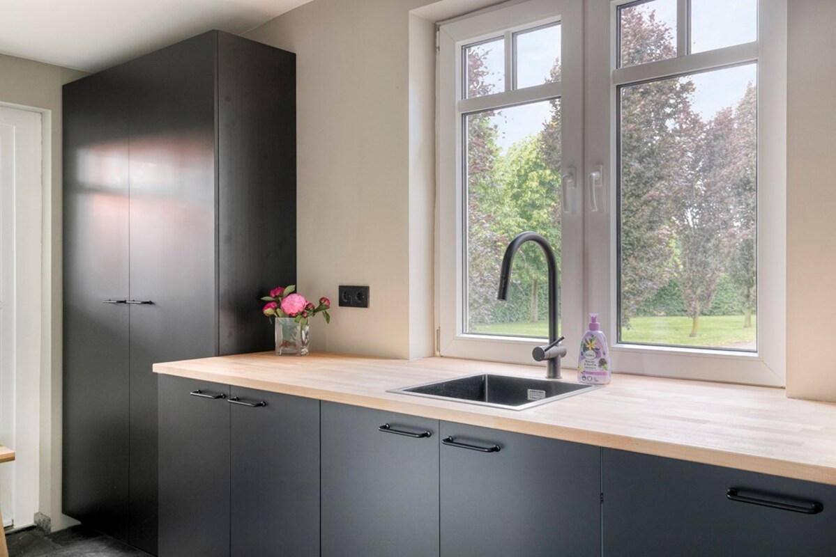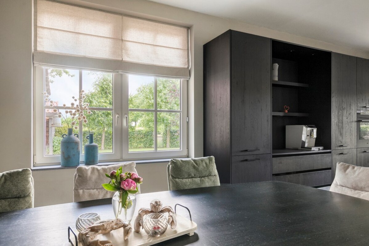 - Luxe woonkeuken met o.a. wijnkoeler, vaatwasser, oven, kookplaat en uitzicht over de landerijen