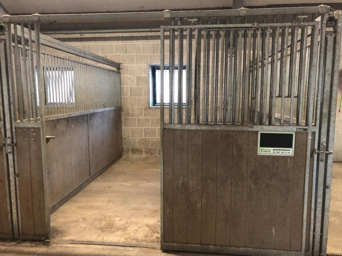 Tussen de boxen zitten verschuifbare muren zodat de stal gemakkelijk en snel uitgemest kan worden. De stal heeft tevens een aparte ruimte die geschikt is voor voeropslag en zadelkamer. In deze ruimte is een sanitaire voorziening aanwezig. Naast deze ruimte is een spoelplaats aanwezig. Daarnaast bevindt zich in de stal de waterpomp voor de beregening van de paardenbak.