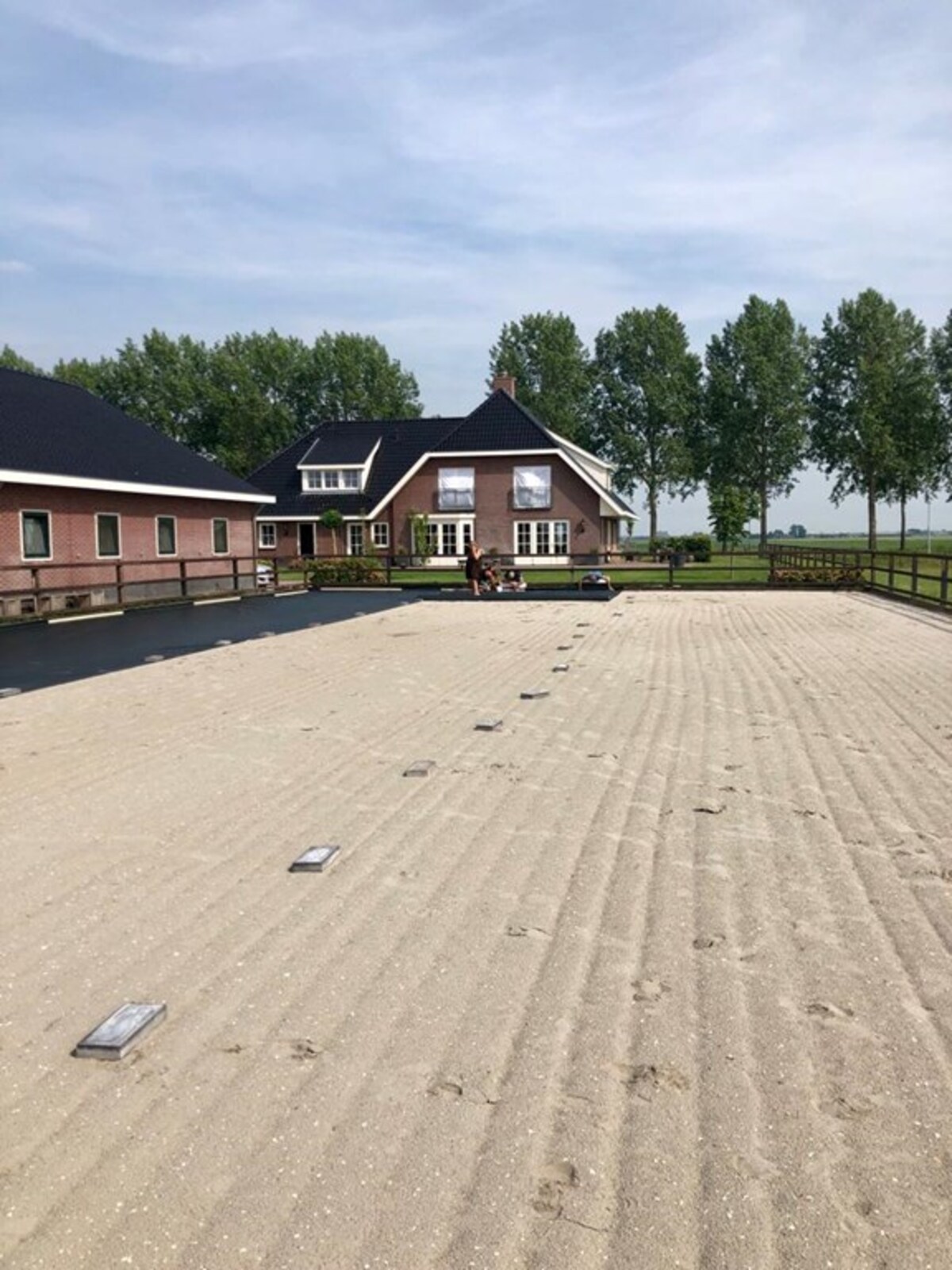 • Een rijbak aanwezig van 20 meter bij 60 meter met eigen sproei installatie vanuit de paardenstal.