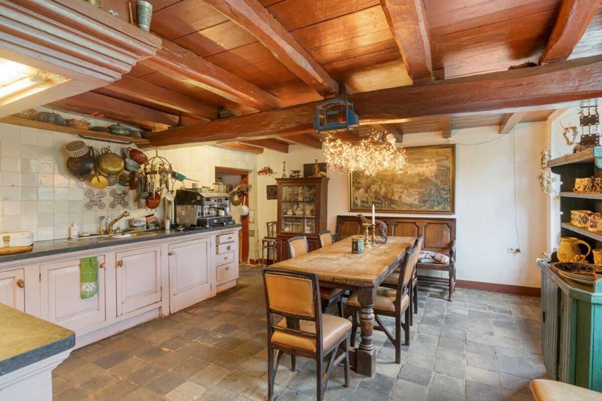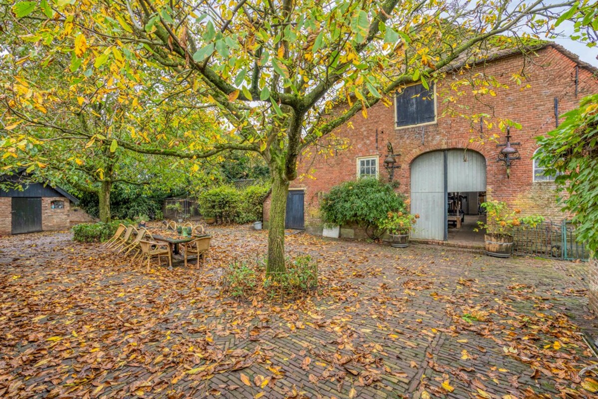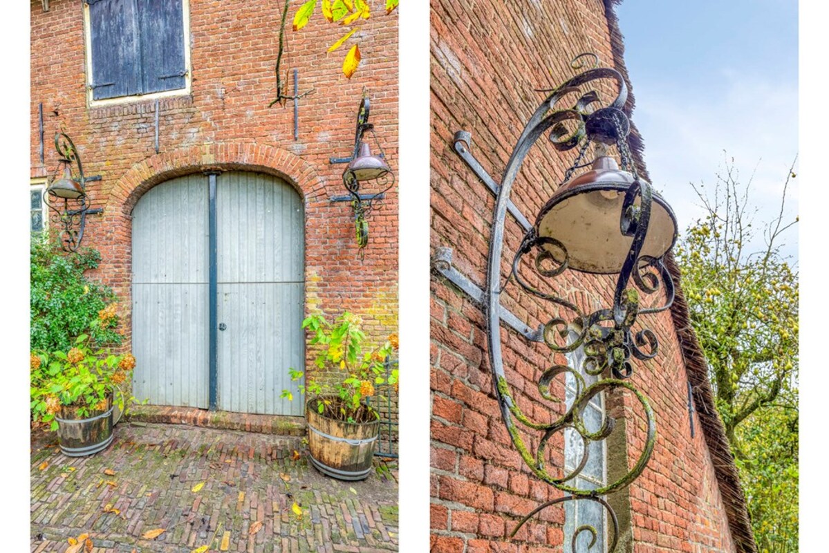 De statige T-boerderij ademt historie. De boerderij heeft een achterhuis, de oude deel, waar de originele gebinten nog aanwezig zijn.