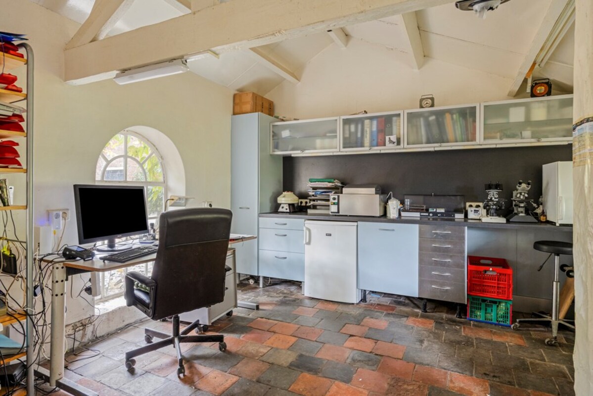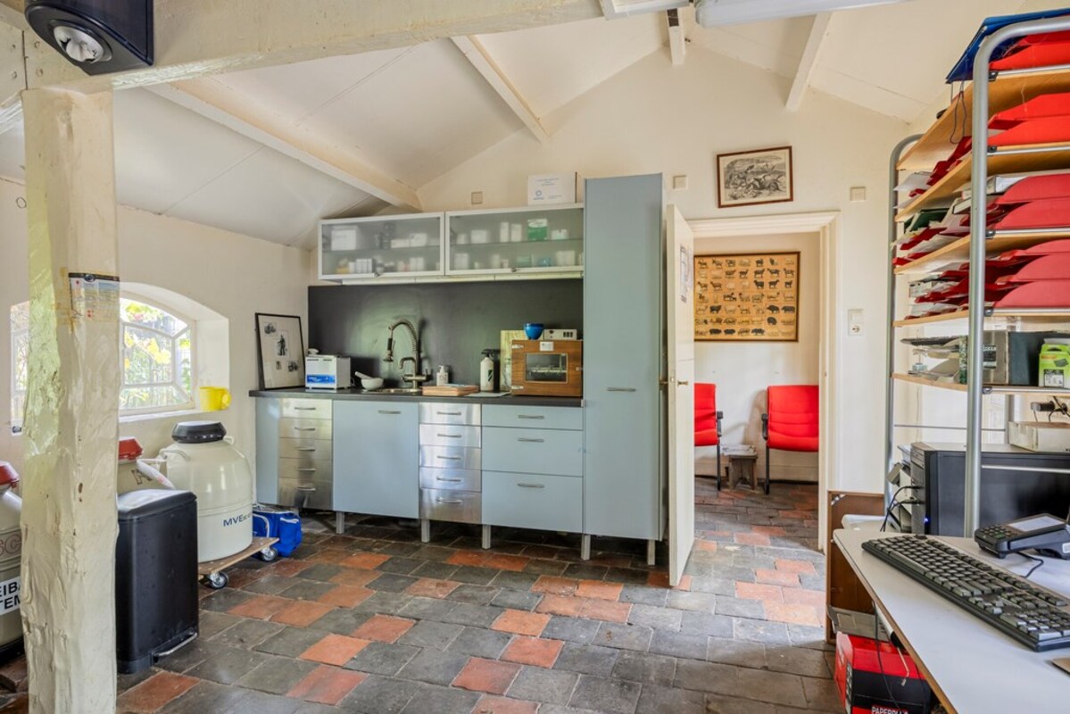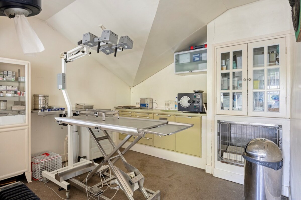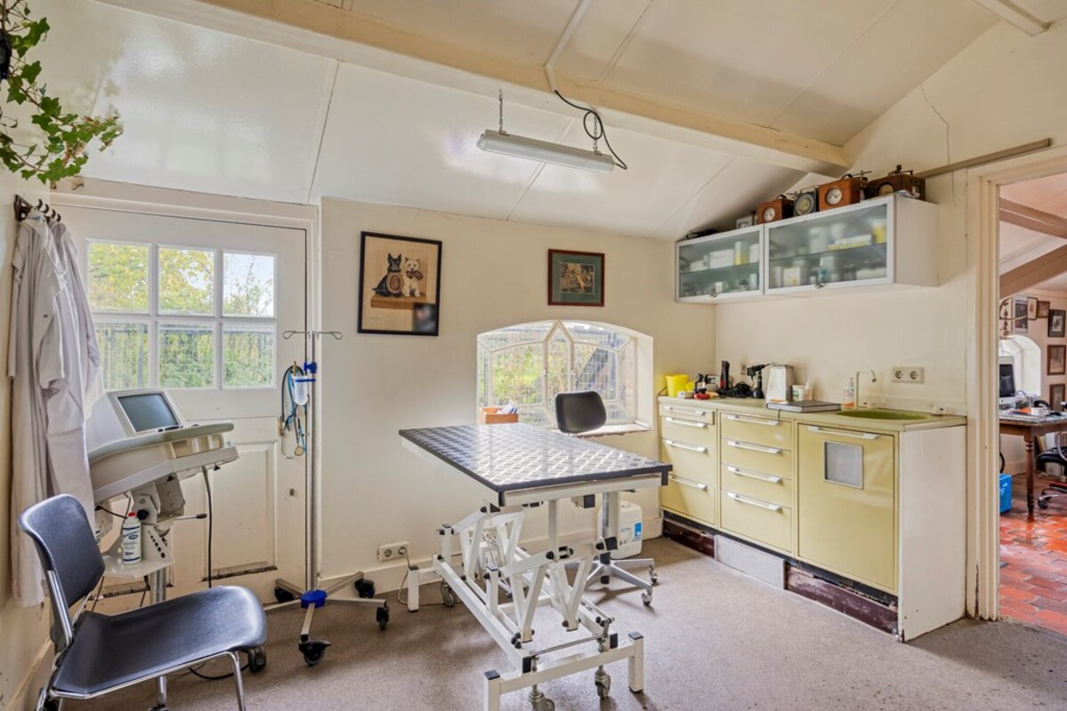 Naast de woonboerderij bevindt zich een volledig ingericht bijgebouw dat momenteel dienst doet als dierenartsenpraktijk. Deze ruimtes kunt u eenvoudig benutten als kantoor, atelier, studio of gastenverblijf. Indeling bijgebouw: ontvangstruimte, keukenblok, toilet, twee ‘behandel- of atelier’-ruimten en kantoor.