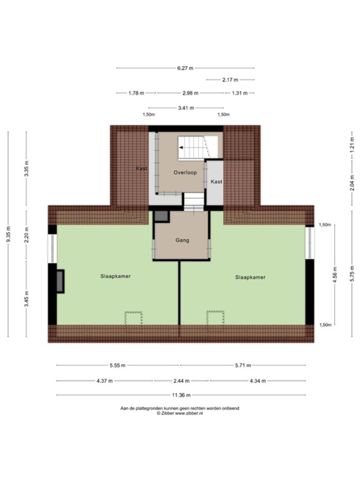 2e verdieping: twee grote slaapkamers en overloop met bergruimte.